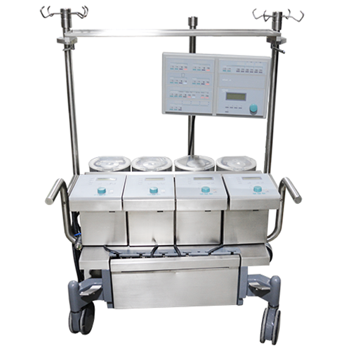 Compact heart–lung machine offering centrifugal and roller pump support, integrated monitoring options, and dependable operation for cardiac and ECMO procedures.