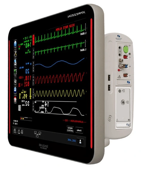Modern patient monitor with intuitive touchscreen interface, configurable parameters, advanced clinical decision support, and scalable monitoring solutions.